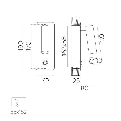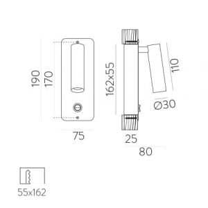Applique Aron Surface noire 19cm du fabricant ACB Lighting