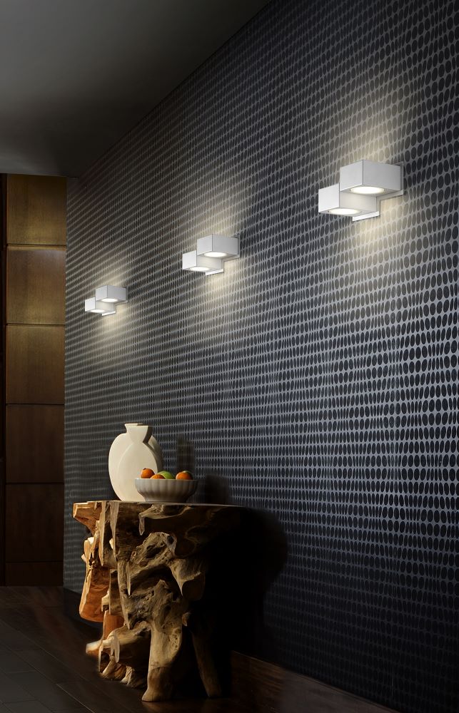 L’applique Dado 4l à l’avantage d’être compacte et s’intègre parfaitement à de petits espaces ou en étant multiplié comme dans une montée d’escalier.