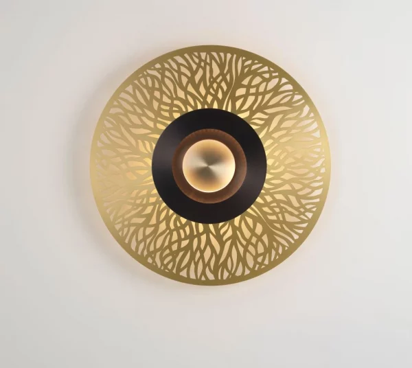 L’applique Earth Racine 330 est un véritable tableaux lumineux avec son centre lumineux et sa lumière homogène sur le mur.