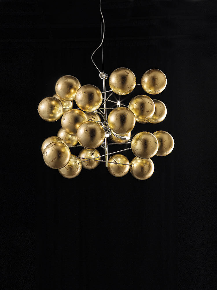 Suspension Atom feuille d’or 8 lampes fabriqué en Italie.