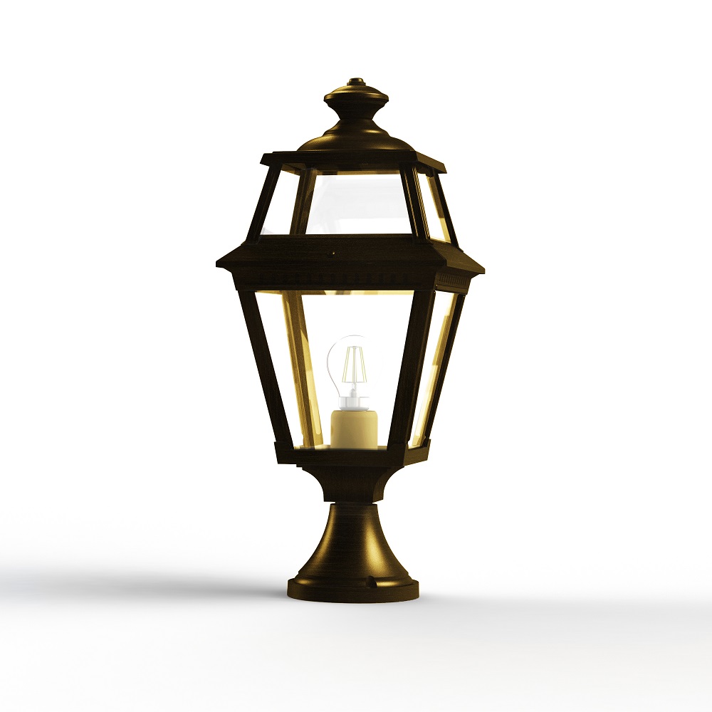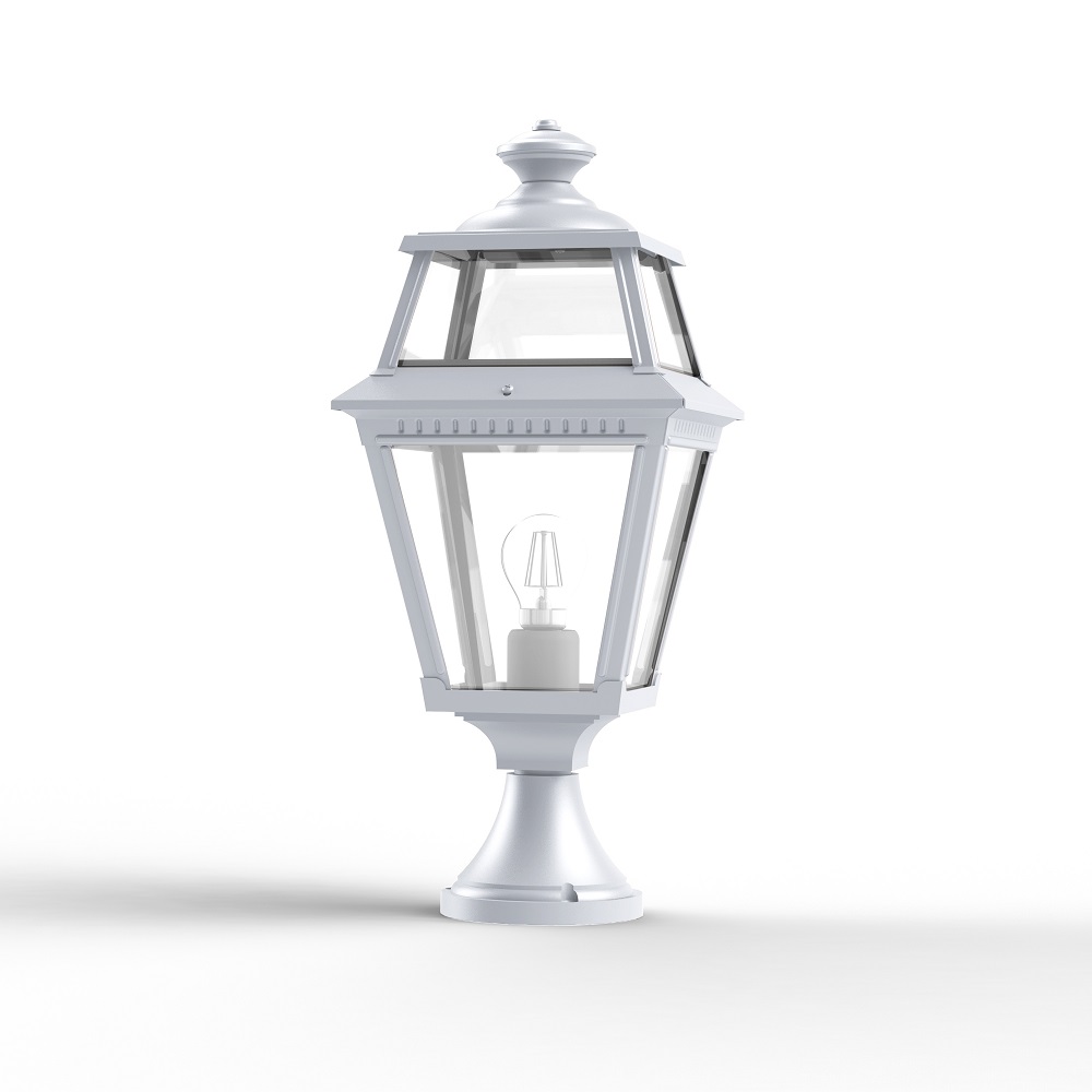 Cette borne Place des Vosges évolution est équipée d’un culot E27 dans lequel nous vous préconisons d’utiliser une ampoule LED (105 W Max)