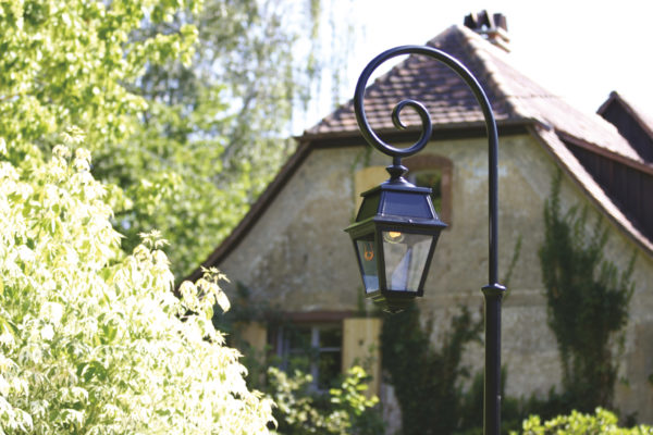 Le lampadaire Avenue 3 avec sa crosse et son pied décoré apportera une touche parisienne à votre jardin ou cours extérieure.