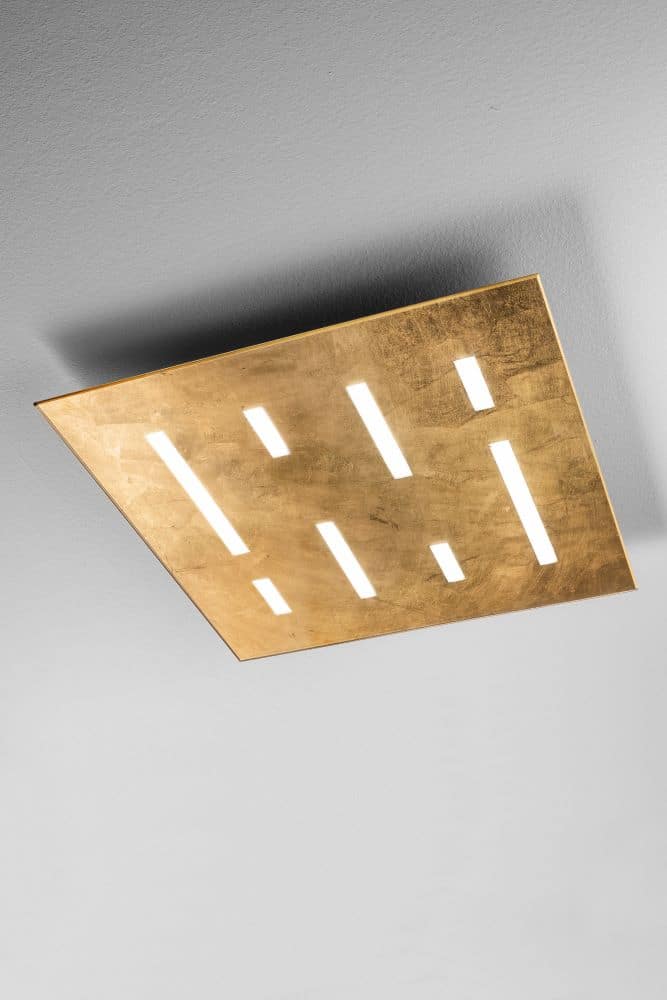 La finition feuille d’or est réalisé à la main dans les ateliers d’Elesi Luce, rendant chaque plafonnier unique.