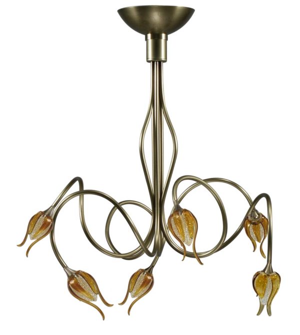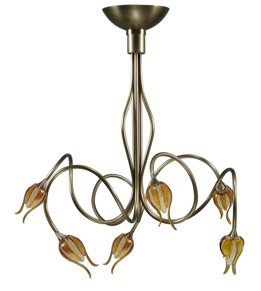 Cette suspension Poona 6L de Réf. poona-bruni-L600-ambre est composée de six ampoules halogènes G 9 de 40 Watts.