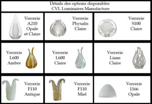 La première partie est composée de verre granité, puis la seconde partie qui recouvre la précédente, est ambrée et effilée.
