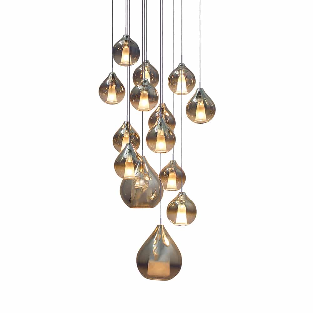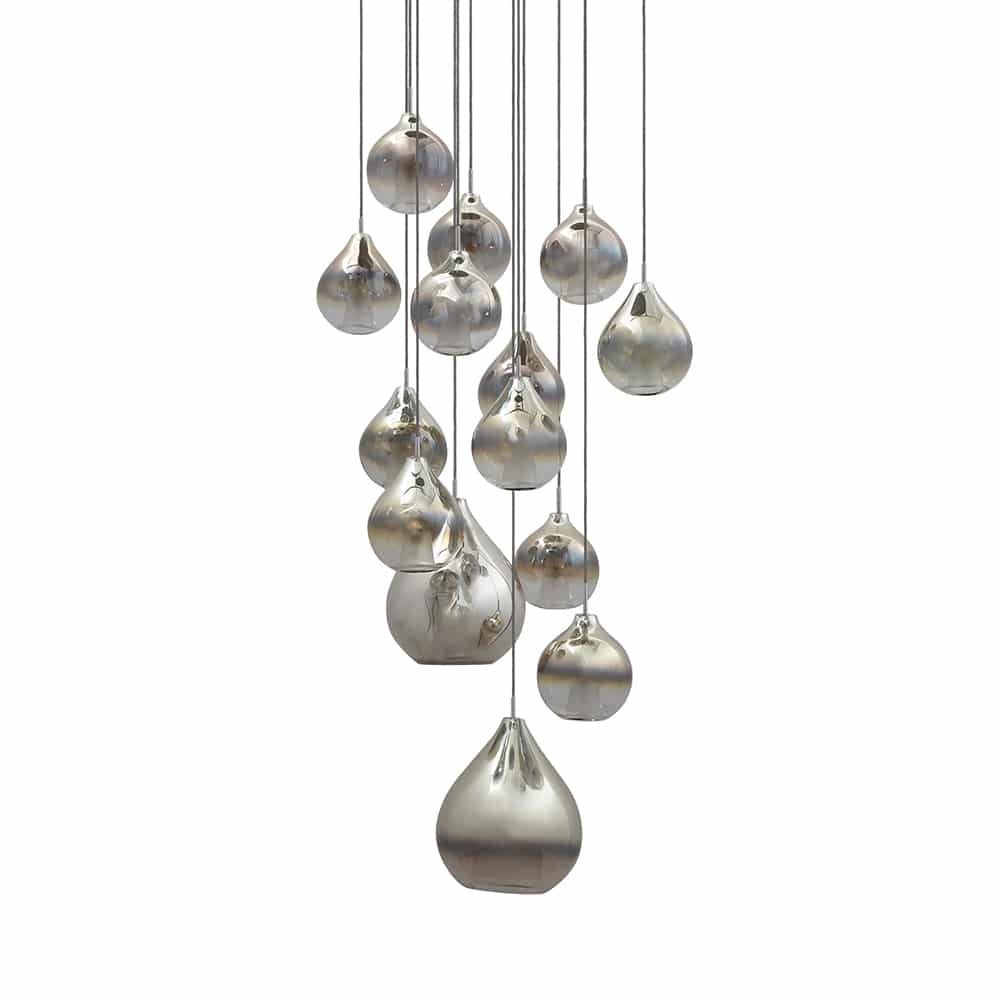 Trois styles de verrerie compose la suspension Circé 14L Calypso :