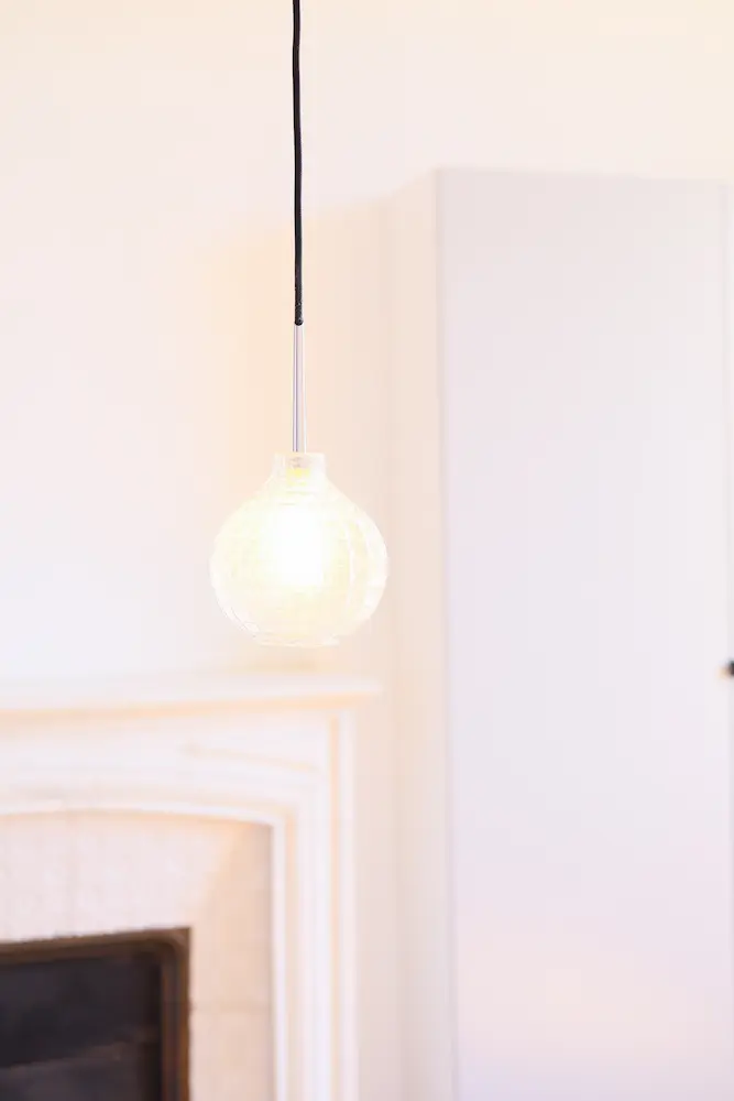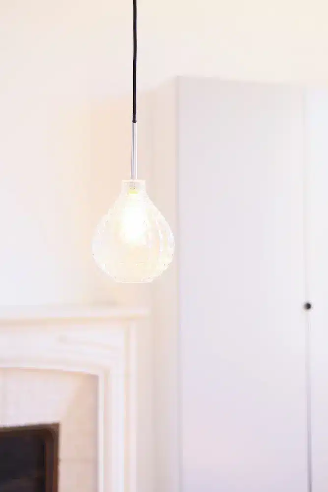 Il est également possible d’installer cette suspension Circé 1l Diamant transparent de part et d’autre de votre lit, afin de créer une lumière de chevet aérienne et décorative.