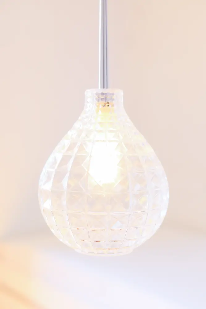 La suspension Circé 1L Diamant transparent à la forme d’une goutte apportera élégance à votre intérieur.