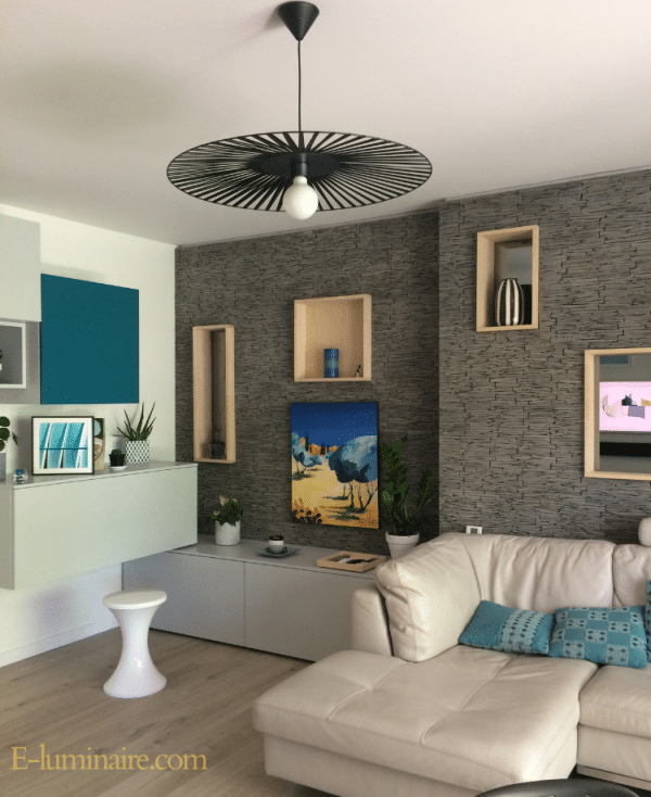 L’abat-jour en forme de soleil est entièrement confectionné à la main proche de Vichy.